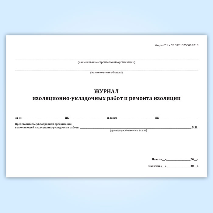 Журнал изоляционно-укладочных работ и ремонта изоляции (форма 7.1) в Химках купить