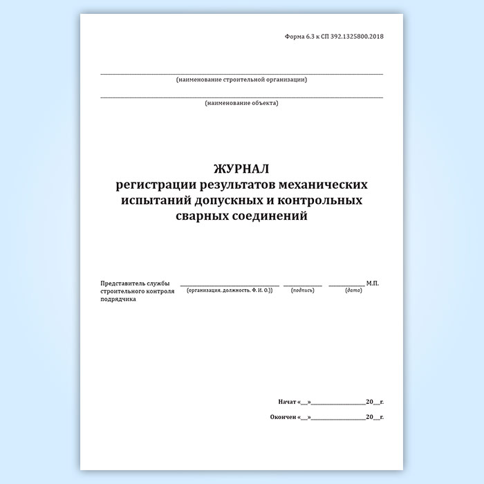 Журнал регистрации результатов механических испытаний допускных и контрольных сварных соединений (форма 6.3) в Химках купить