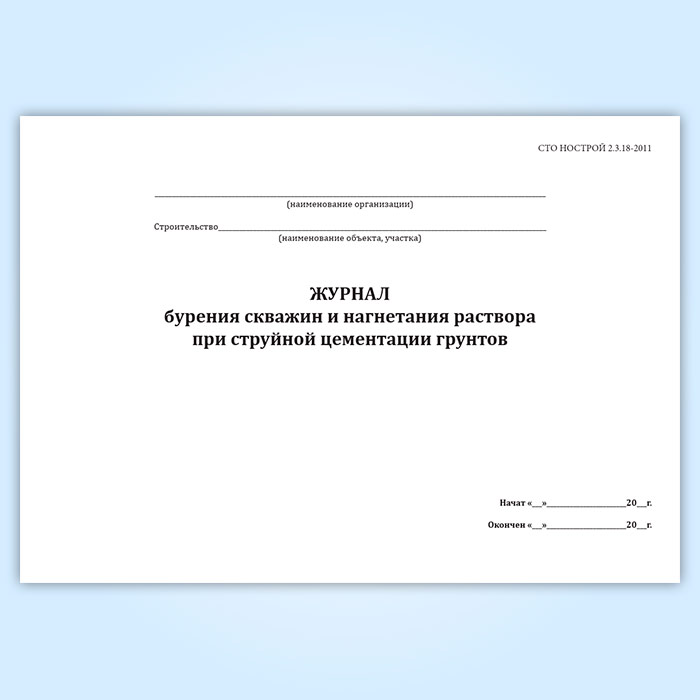 Журнал бурения скважин и нагнетания раствора при струйной цементации грунтов в Химках купить