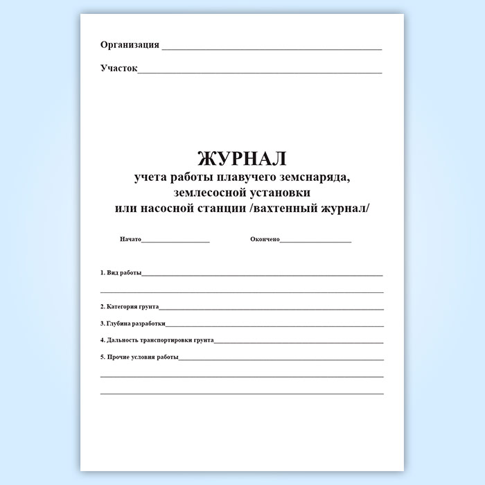 Журнал учета работы плавучего земснаряда, землесосной установки или насосной станции (вахтенный журнал) (форма ПД-3) в Химках купить