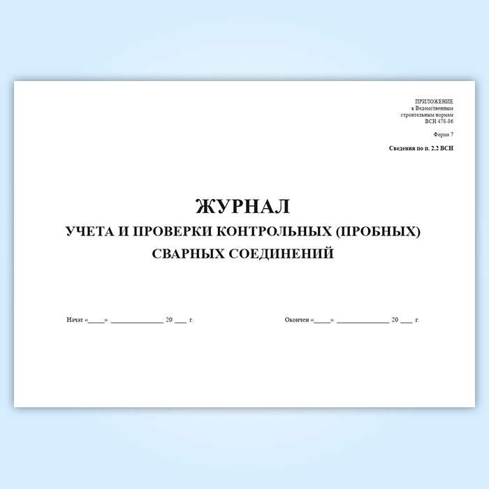 Журнал учета и проверки качества контрольных (пробных) сварных соединений (форма 7) в Химках купить