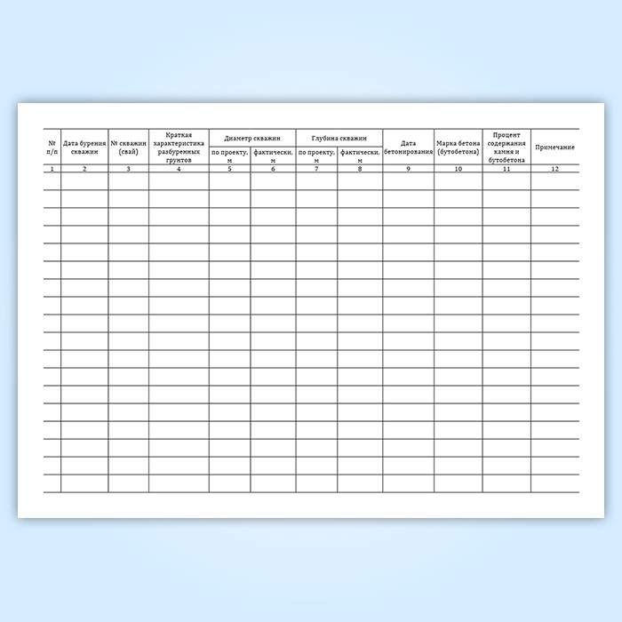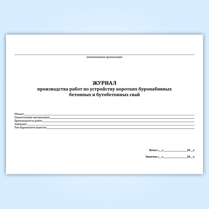 Журнал производства работ по устройству коротких буронабивных бетонных и бутобетонных свай в Химках купить