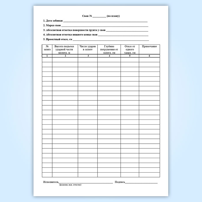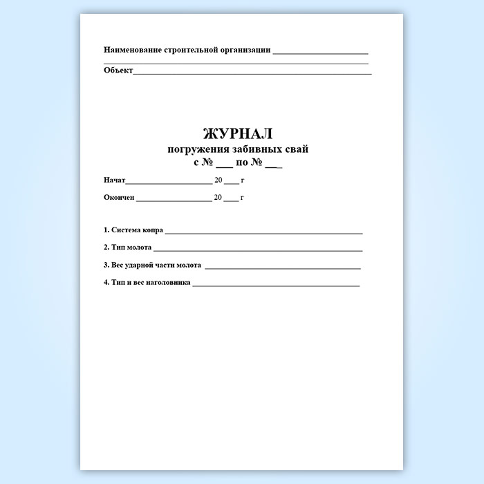 Журнал погружения забивных свай в Химках купить