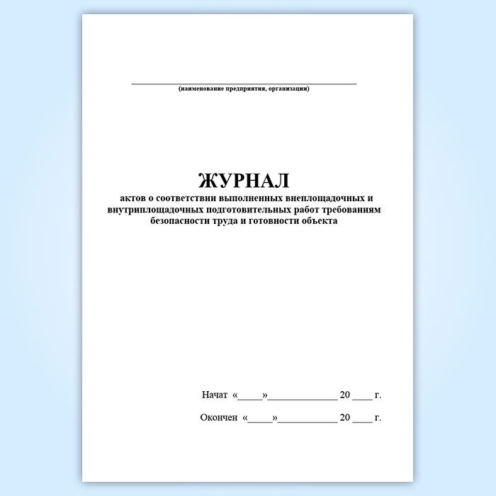 Журнал актов о соответствии выполненных внеплощадочных и внутриплощадочных подготовительных работ требованиям безопасности труда и готовности объекта в Химках купить