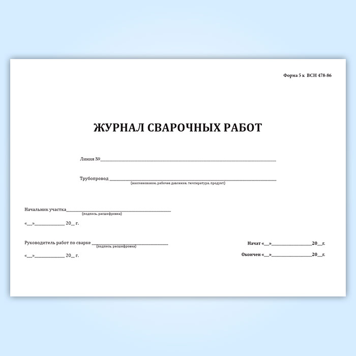 Журнал сварочных работ (ВСН 478-86) в Химках купить