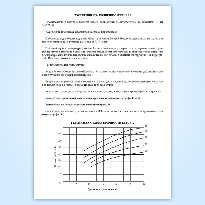 Журнал бетонных работ в зимнее время в Химках купить