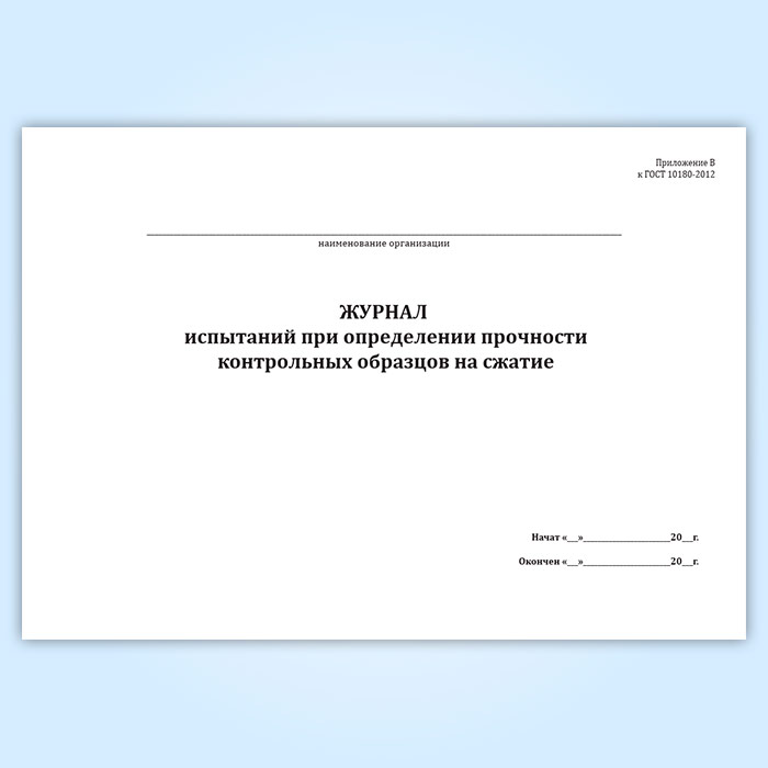 Журнал испытаний при определении прочности контрольных образцов на сжатие в Химках купить