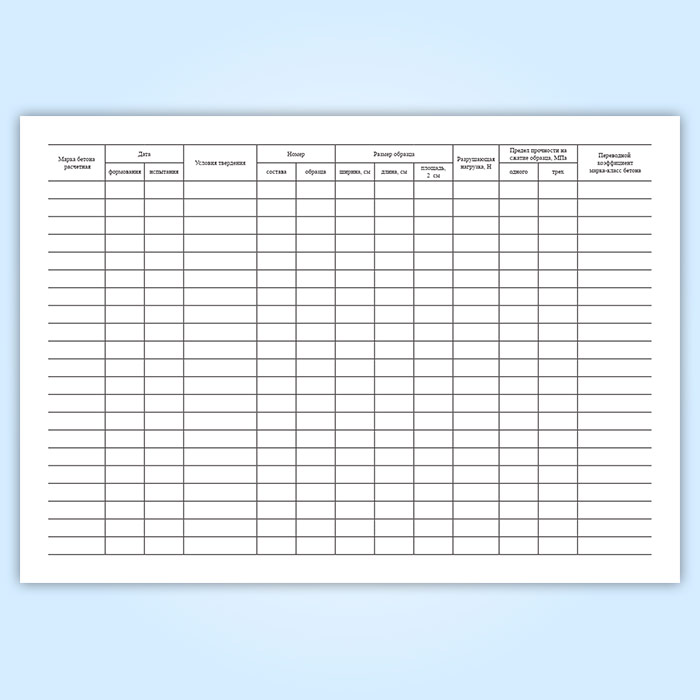 Журнал результатов по определению прочности бетона эталонным молотком Кашкарова в Химках купить