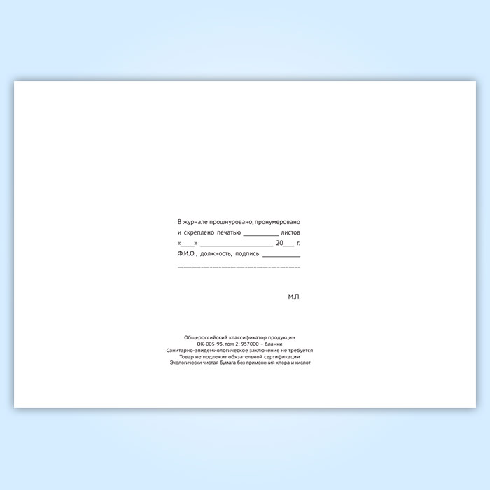 Вы получаете печатную продукцию прошнурованной и c местом для вашей печати в соответствии с действующими нормативными документами: