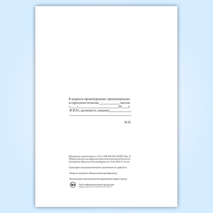 Вы получаете печатную продукцию прошнурованной и c местом для вашей печати в соответствии с действующими нормативными документами: