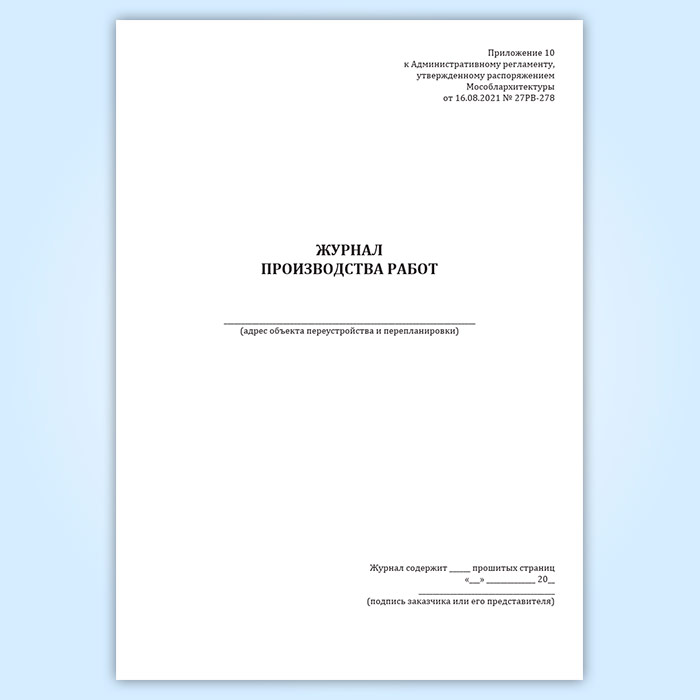 Журнал производства работ (Распоряжение Мособлархитектуры МО от 16.08.2021 N 27РВ-278) в Химках купить