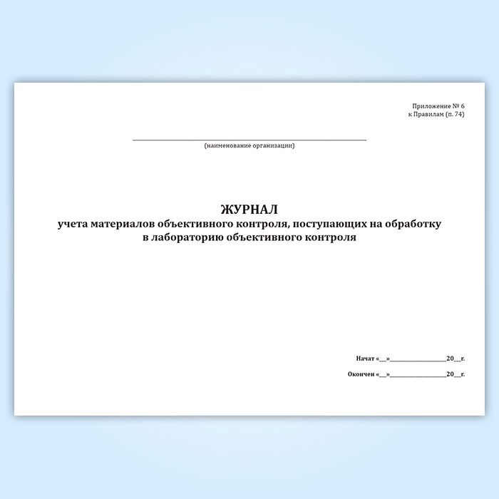 Журнал учета материалов объективного контроля, поступающих на обработку в лабораторию объективного контроля в Химках купить