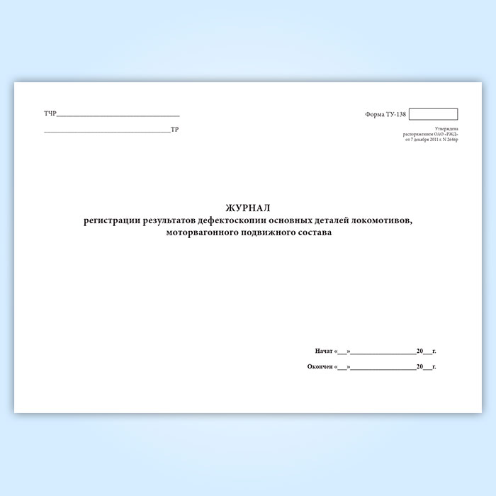 Журнал регистрации результатов дефектоскопии основных деталей локомотивов, моторвагонного подвижного состава (форма ТУ-138) в Химках купить