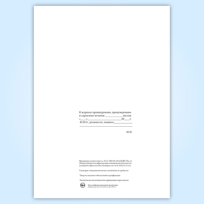 Вы получаете печатную продукцию прошнурованной и c местом для вашей печати в соответствии с действующими нормативными документами: