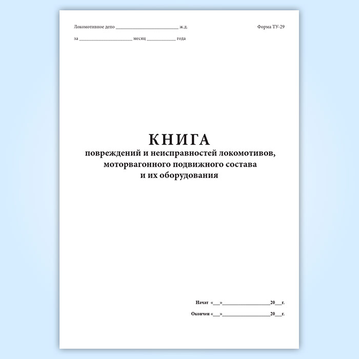 Книга повреждений и неисправностей локомотивов, моторвагонного подвижного состава и их оборудования (форма ТУ-29) в Химках купить