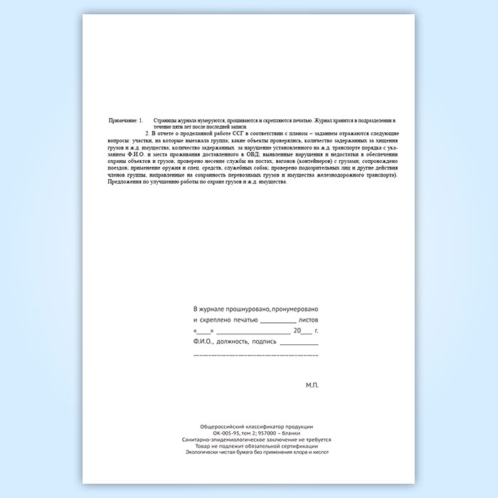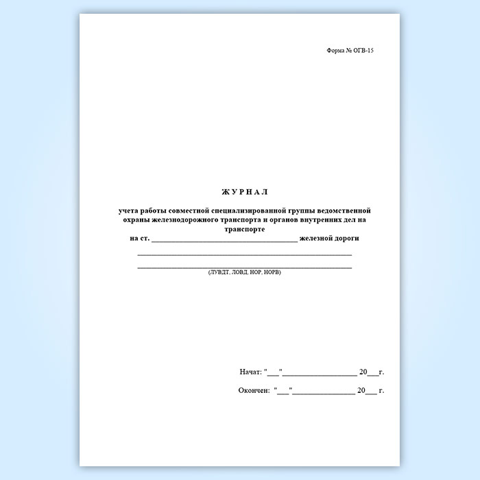 Журнал учета работы совместной специализированной группы ведомственной охраны железнодорожного транспорта и органов внутренних дел на транспорте (форма № ОГВ-15) в Химках купить