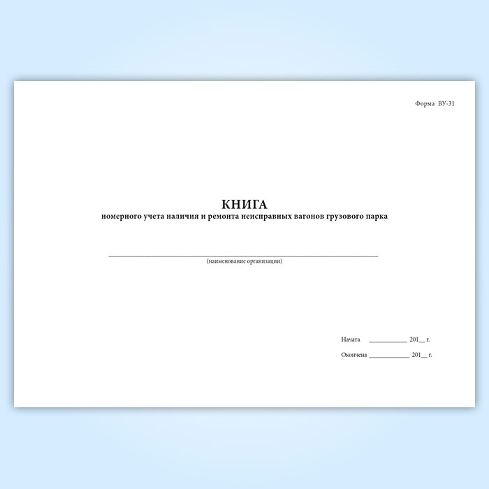 Книга номерного учета наличия и ремонта неисправных вагонов грузового парка ВУ-31 в Химках купить