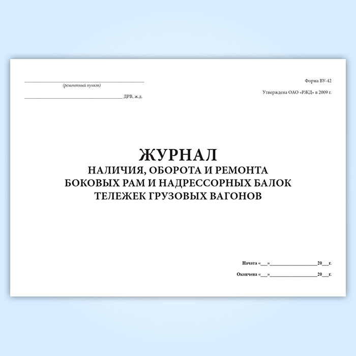 Журнал учета наличия, оборот и ремонт боковых рам и надрессорных балок тележек грузовых вагонов (форма ВУ-42) в Химках купить