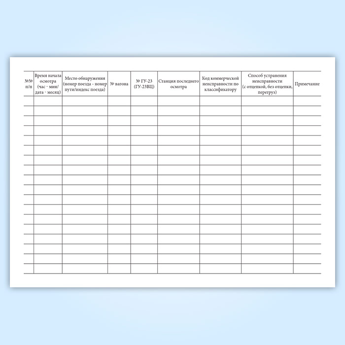 Книга регистрации коммерческих неисправностей вагонов в поездах в пунктах коммерческого осмотра (форма ГУ-98ВЦ) в Химках купить