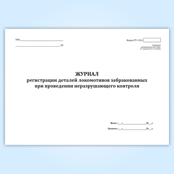 Журнал регистрации деталей локомотивов, забракованных при проведении неразрушающего контроля (форма ТУ-132л) в Химках купить