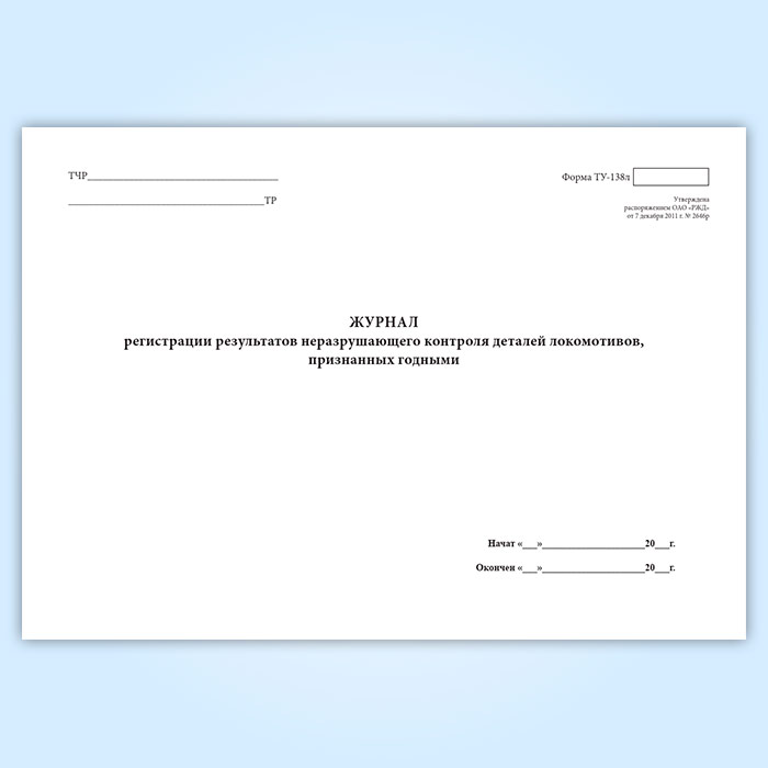 Журнал регистрации результатов неразрушающего контроля деталей локомотивов, признанных годными (форма ТУ-138л) в Химках купить