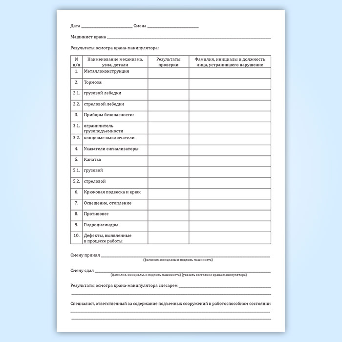 Вахтенный журнал машиниста грузоподъемного крана-манипулятора в Химках купить