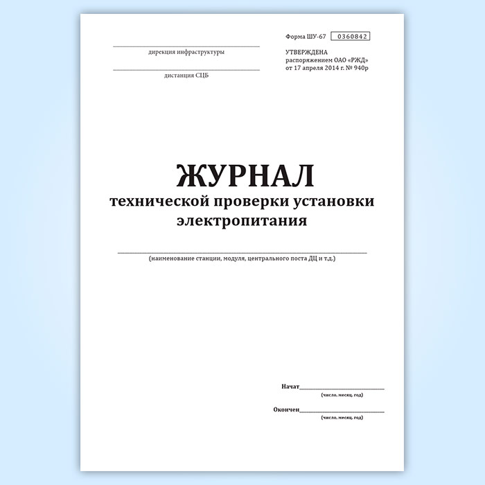 Журнал технической проверки установки электропитания (форма ШУ-67) в Химках купить