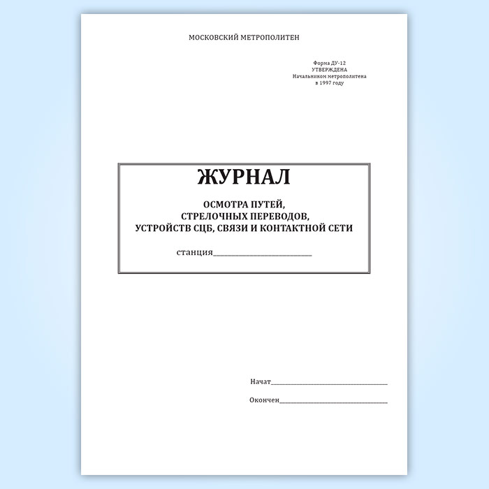Журнал осмотра путей, стрелочных переводов, устройств СЦБ, связи и контактной сети (форма ДУ-12) в Химках купить