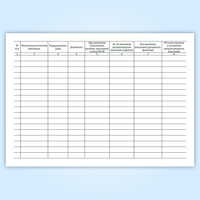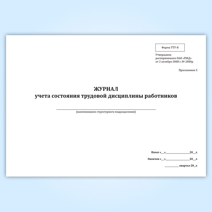 Журнал учета состояния трудовой дисциплины работников (форма ТТУ-8) в Химках купить