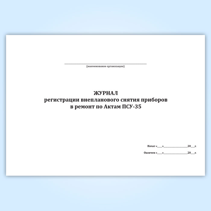 Журнал регистрации внепланового снятия приборов в ремонт по Актам ПСУ-35 в Химках купить