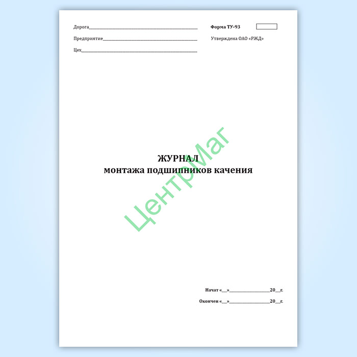 Журнал монтажа подшипников качения (форма ТУ-93) в Химках купить