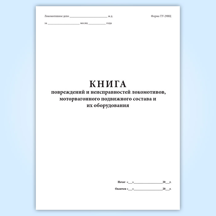 Книга повреждений и неисправностей локомотивов, моторвагонного подвижного состава и их оборудования (форма ТУ-29ВЦ) в Химках купить