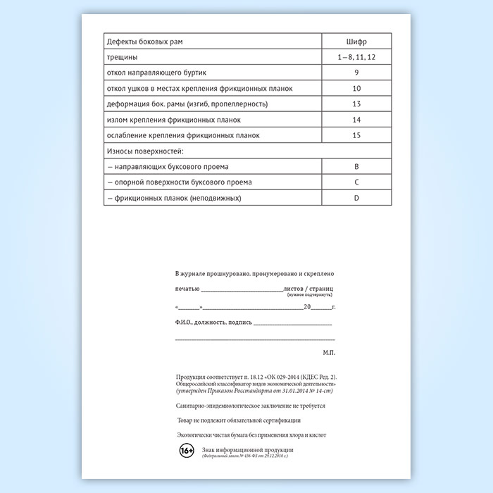 Журнал учета результатов осмотра и дефектоскопирования боковых рам тележек грузовых вагонов в Химках купить