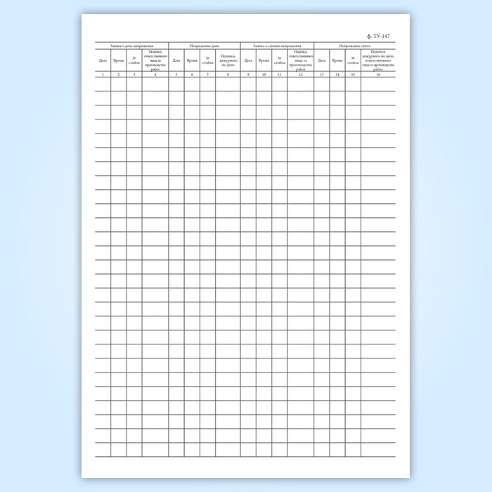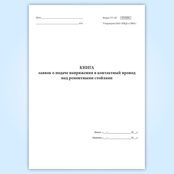 Книга заявок о подаче напряжения в контактный провод над ремонтными стойлами (форма ТУ-147) в Химках купить