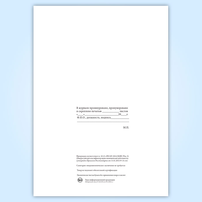 Вы получаете печатную продукцию прошнурованной и c местом для вашей печати в соответствии с действующими нормативными документами: