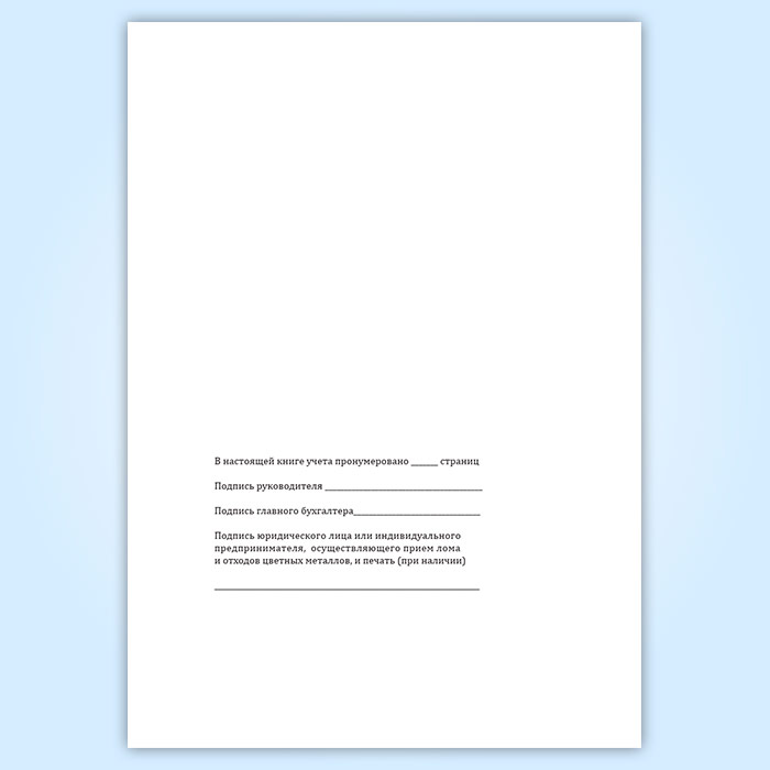 Вы получаете печатную продукцию прошнурованной и c местом для вашей печати в соответствии с действующими нормативными документами:
