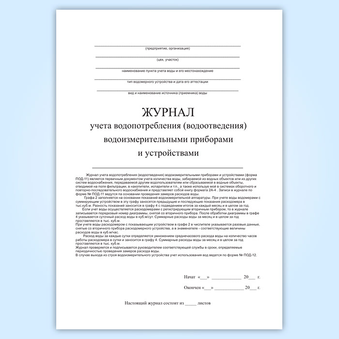 Журнал учета водопотребления (водоотведения) водоизмерительными приборами и устройствами (форма ПОД-11) в Химках купить