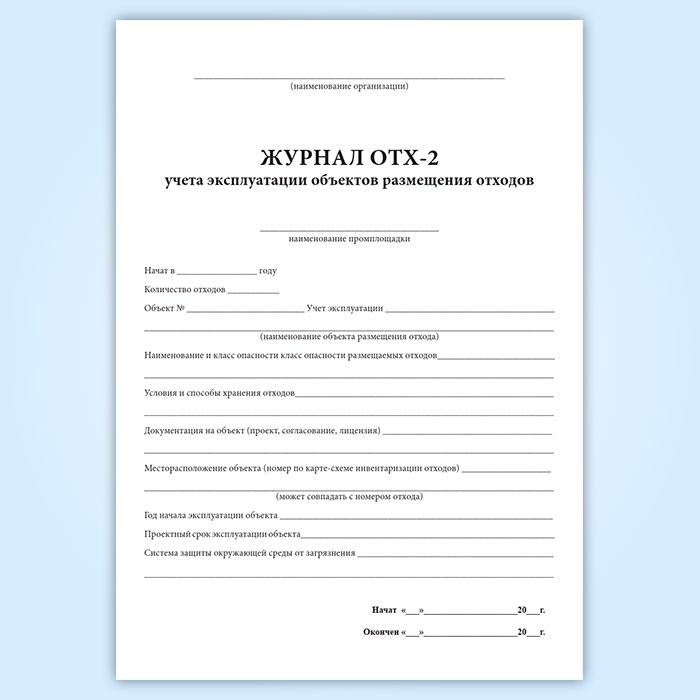 Журнал учета эксплуатации объектов размещения отходов ОТХ-2 в Химках купить