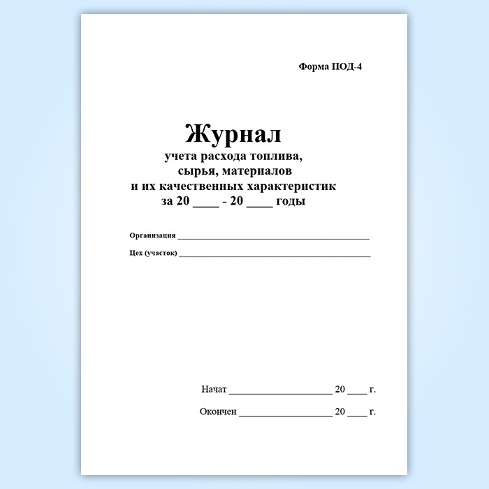 Журнал учета расхода топлива, сырья, материалов и их качественных характеристик (форма ПОД-4) в Химках купить