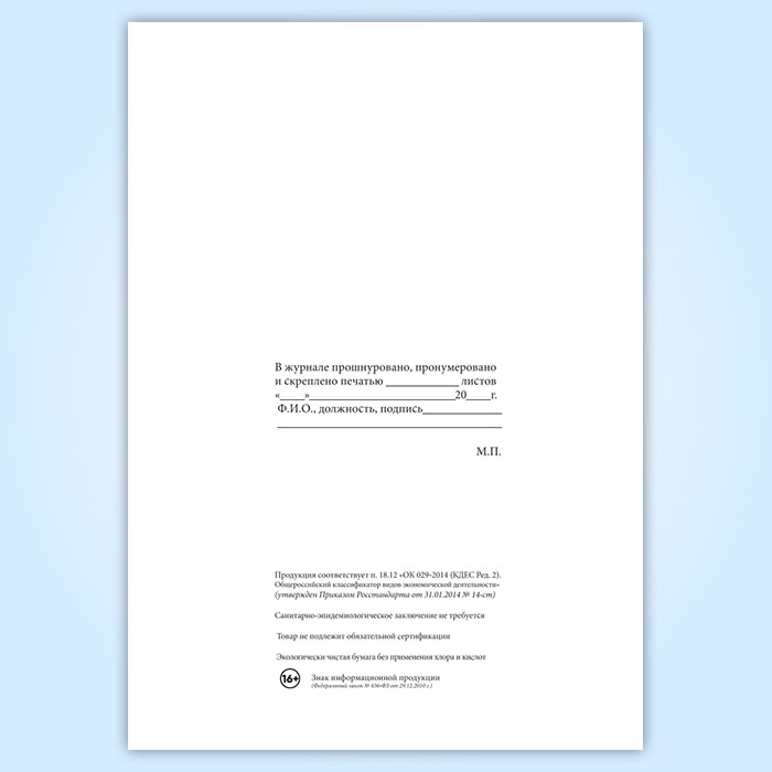 Вы получаете печатную продукцию прошнурованной и c местом для вашей печати в соответствии с действующими нормативными документами:
