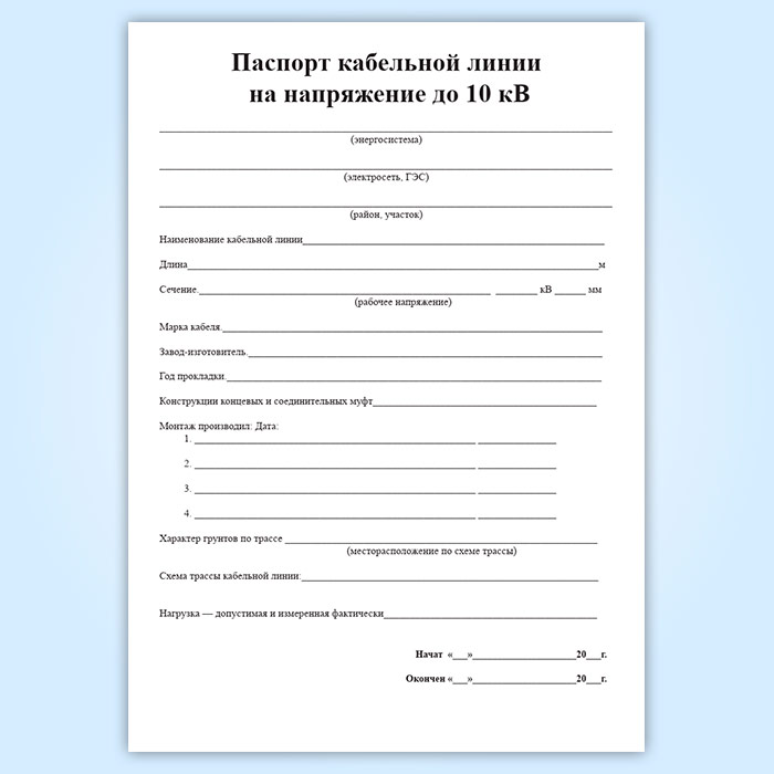 Паспорт кабельной линии на напряжение до 10 кВ в Химках купить
