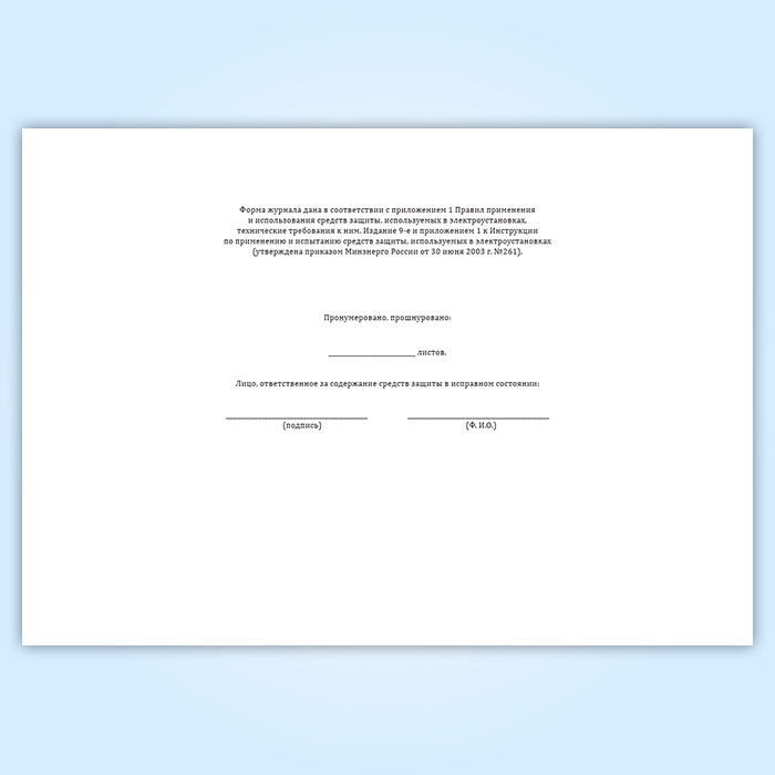 Журнал учета и содержания средств защиты (используемых в электроустановках) в Химках купить