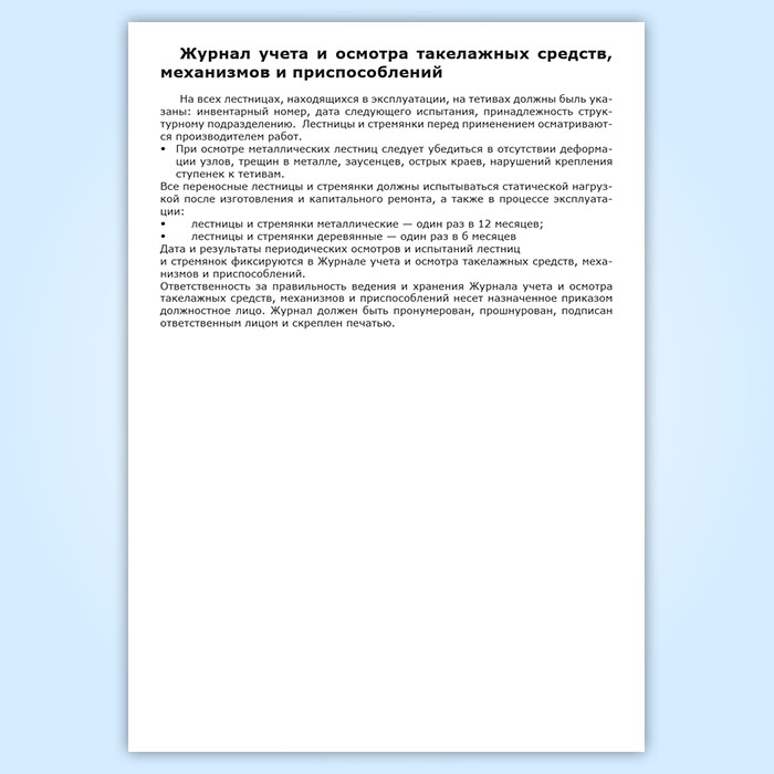 Журнал учета и осмотра такелажных средств, механизмов и приспособлений в Химках купить