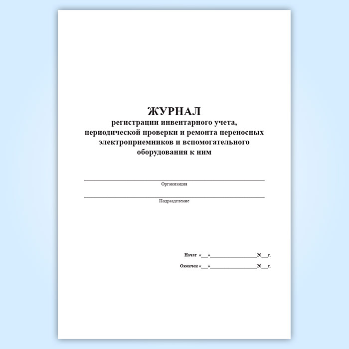 Журнал регистрации инвентарного учета, периодической проверки и ремонта переносных электроприемников и вспомогательного оборудования к ним в Химках купить