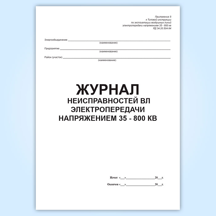 Журнал учета работ на ВЛ электропередачи напряжением 35-800 квВ в Химках купить