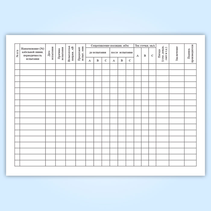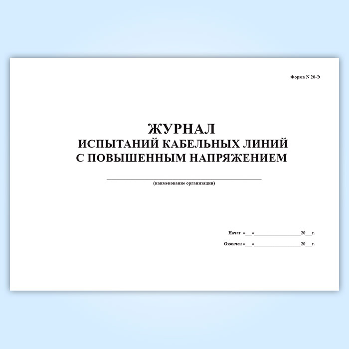 Журнал испытаний кабельных линий с повышенным напряжением (форма № 20-Э) в Химках купить