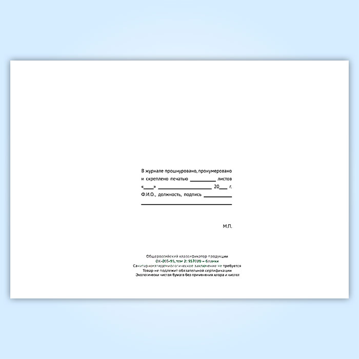 Вы получаете печатную продукцию прошнурованной и c местом для вашей печати в соответствии с действующими нормативными документами: