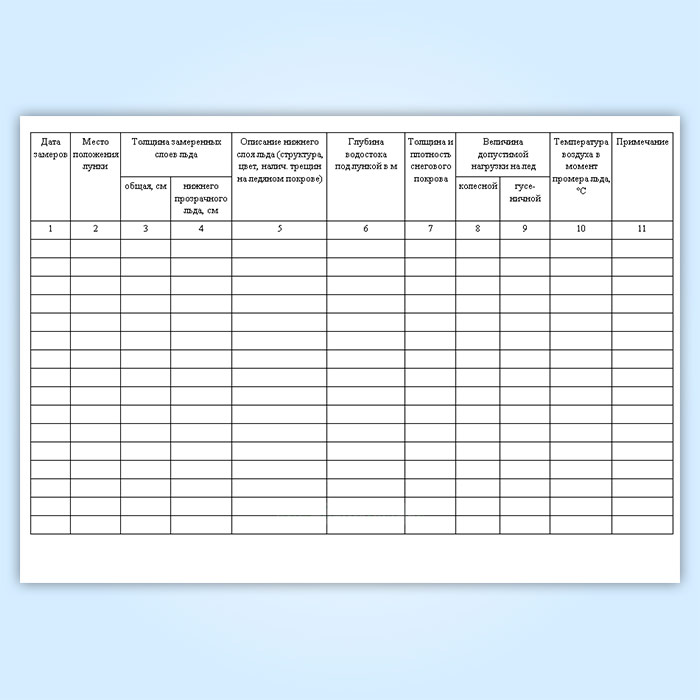 Журнал промеров толщины льда и определения грузоподъемности ледяного покрова в Химках купить