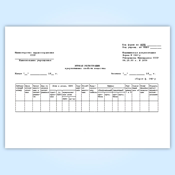 Журнал регистрации кумулятивных свойств вещества (форма № 340-у) в Химках купить