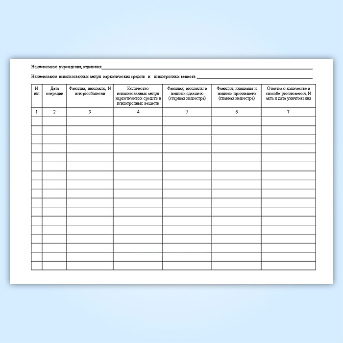 Журнал регистрации операций с использованными ампулами из-под наркотических средств и психотропных веществ у главной медицинской сестры стационарной медицинской организации в Химках купить